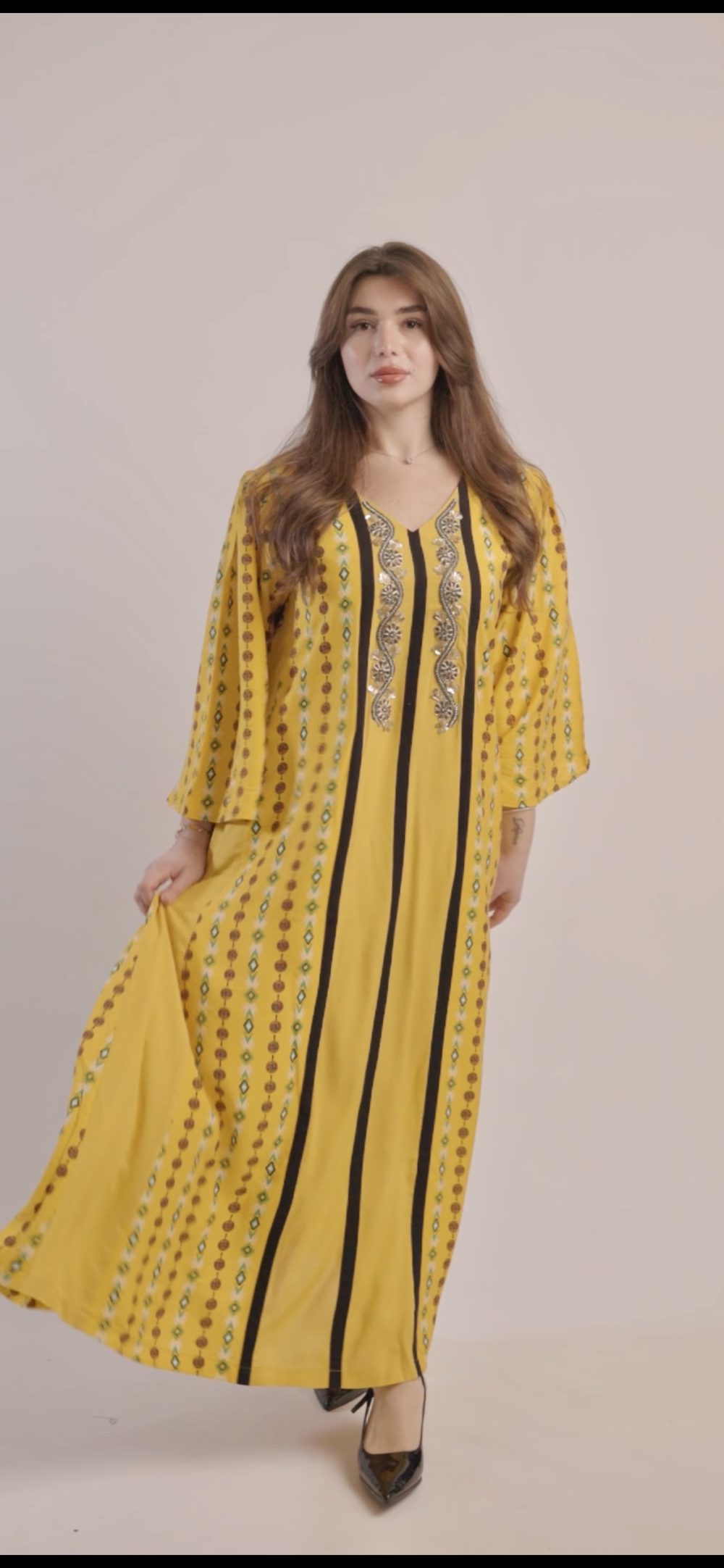 جلابية فاخرة بتطريز وكم مفتوح مع حزام ذهبي